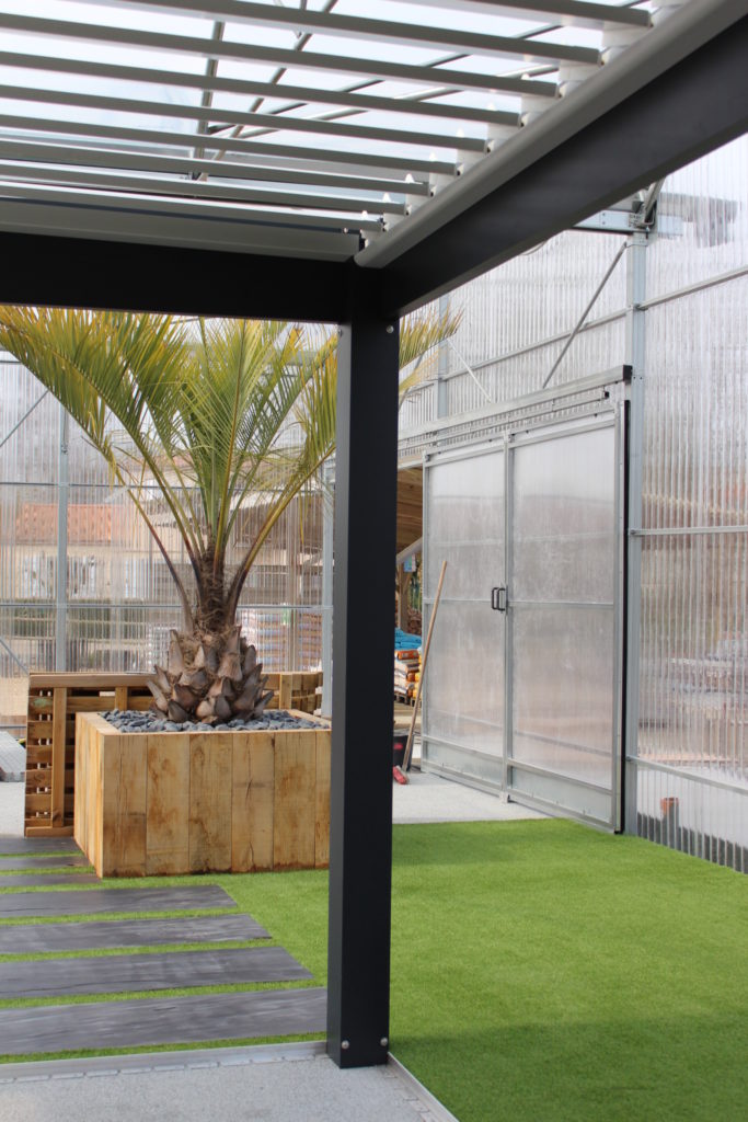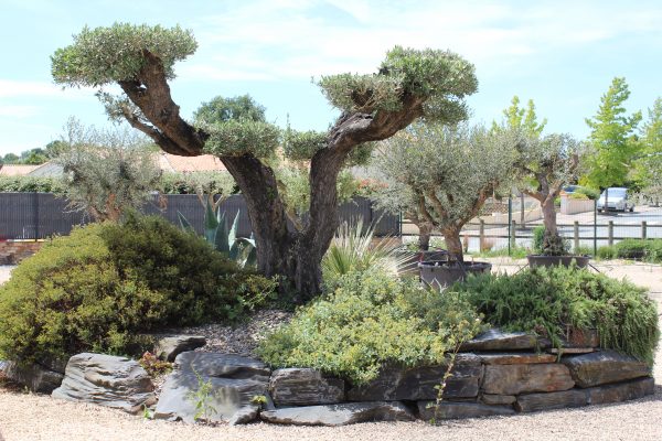sur un site de 10 hectares, avec une production d’environ 80 000 plantes, comprenant: arbres, arbustes, vivaces, graminées, oliviers, palmiers….